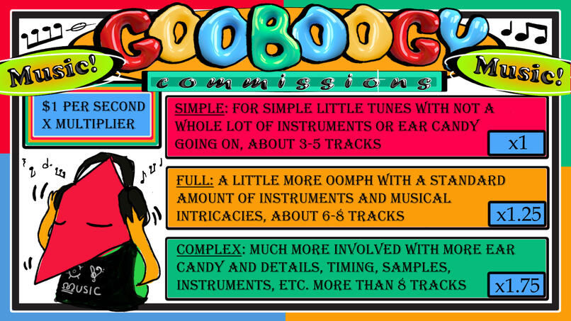I also make music, and I can make music for YOU! A theme for your OC, a ringtone, the manifestation of a tune stuck in your head, whatever it is I got you. My area of expertise is in electronic midi music and eurorack modular synthesizers. To listen to my published works, you can find me on Spotify, Apple Music, Youtube Music, Bancamp, and more as GOOBOOGY.